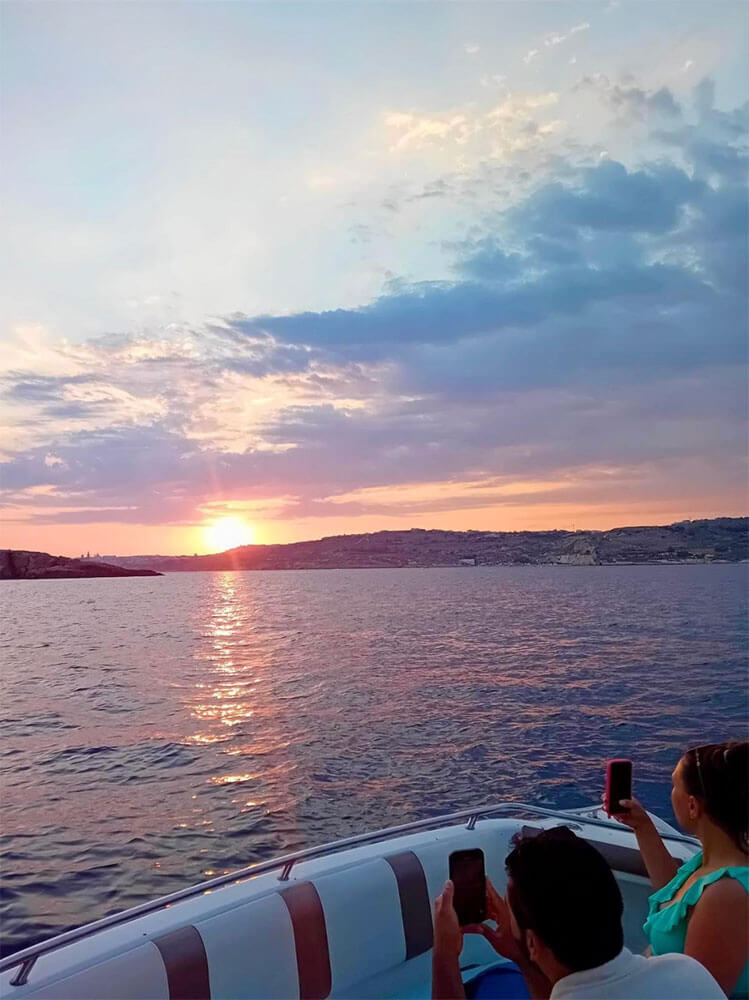 Set sail on a voyage of serenity, where you can experience the soft caress of the breeze on your skin while witnessing the dawn break over the tranquil waters of Comino. Delight in the option to indulge in refreshing swims and snorkeling at select spots or opt for leisurely cruising, reveling in the splendor of the coastline, pristine beaches, and tranquil bays. As the excursion draws to a close, witness the breathtaking spectacle of the Mediterranean sunset casting its fiery glow.